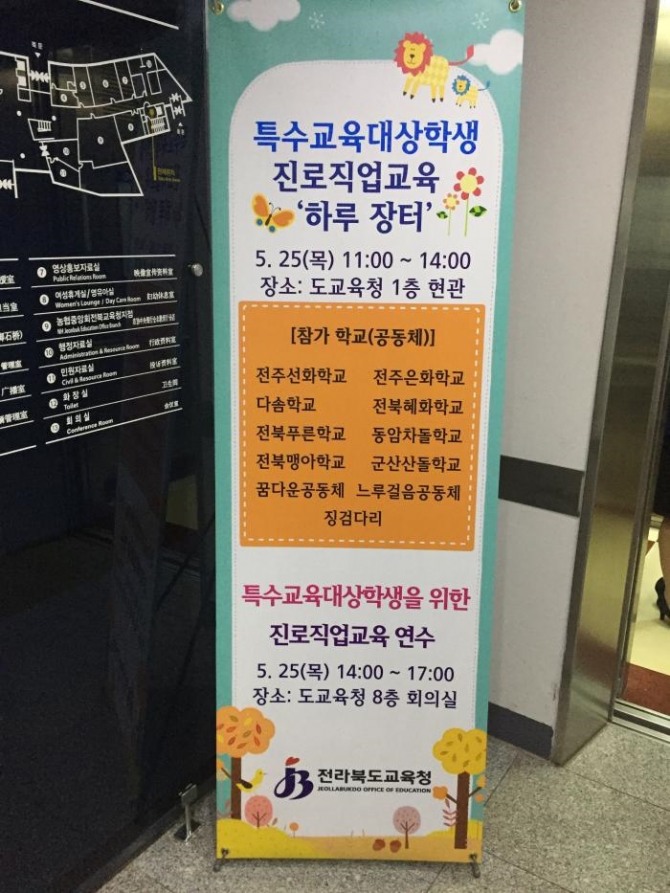 한편 이날 오후에는 도교육청 8층 회의실에서 특수학교 및 특수학급 교사를 대상으로 방명애 우석대 특수교육과 교수를 초청해 ‘특수교육대상학생을 위한 자기결정기술과 진로직업교육’을 주제로 진로직업교육 역량강화 연수도 개최한다.