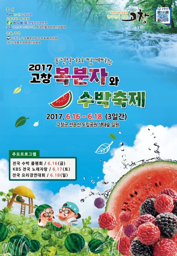 특히, 고창 농특산품 판매장에서는 복분자 생과와 수박을 시중가보다 저렴한 가격에 판매하며, 고창 복분자와 명품수박을 구매하는 방문객에게는 주차장까지 수박을 배달해주는 서비스도 실시하여 한층 여유롭게 축제를 즐길 수 있을 것으로 보인다.