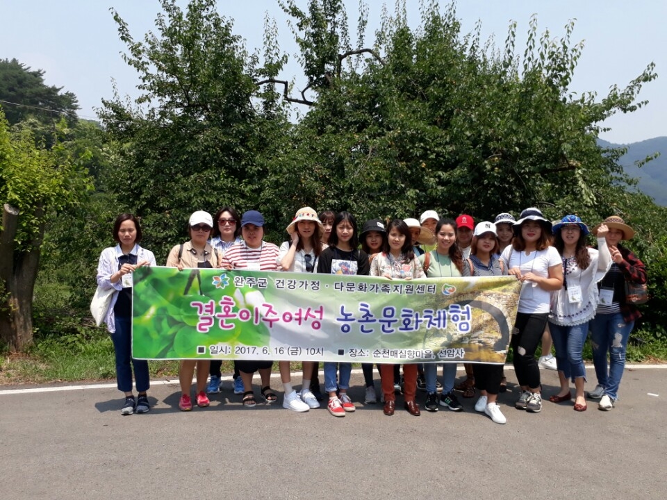 이날 결혼이주여성들은 매실 따기, 매실 청 담그기, 비빔밥시식, 선운사 등 전남 순천 지역의 대표적인 농촌문화체험활동과 명소를 둘러봤다.