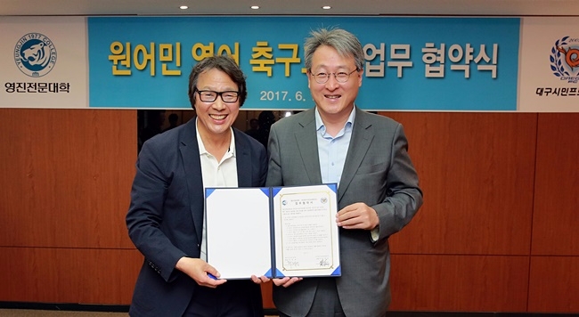 이미지 확대보기이날 MOU체결식에는 최재영 영진전문대학 총장, 조광래 대구FC사장 등 관계자들이 참석했다.