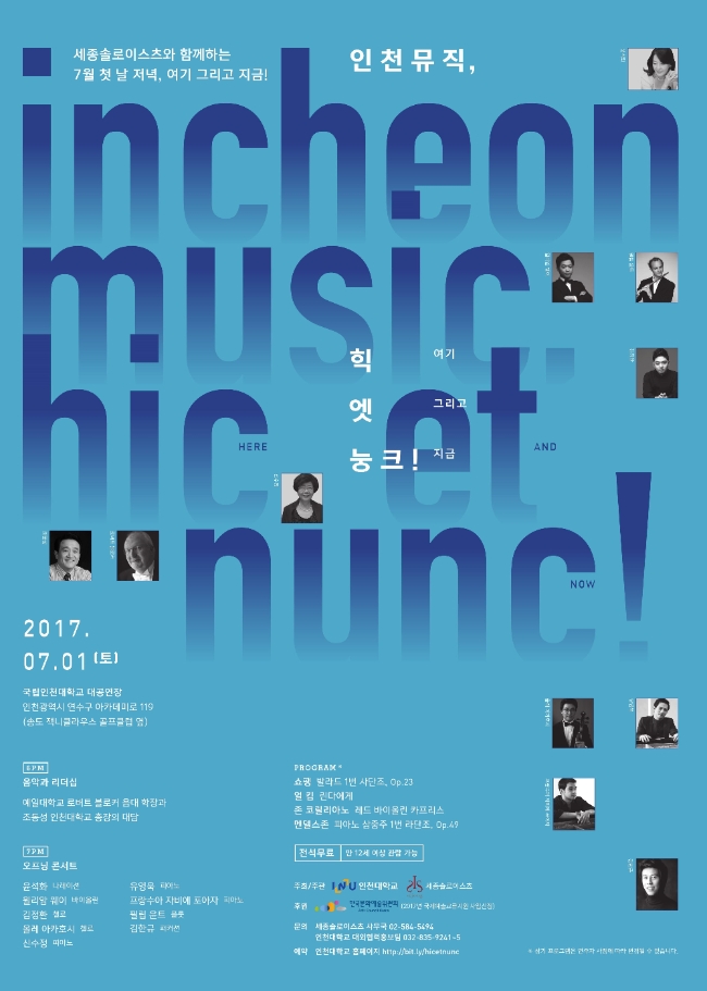 8일간 인천대와 예일대 음대, 줄리아드 음대, 세종솔로이스츠 등과 연계해 실시하는 이번 음악회는 인천대가 국립대로서 지역사회 시민 및 기업들에게 세계적인 음악프로그램을 제공함으로써 함께 공감하고 향후 인천이 국제적인 음악도시로 도약하기 위해 마련됐다.