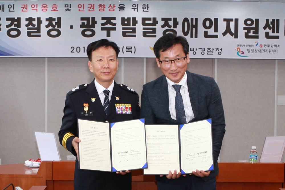 이번 업무협약은 지난 2015년 11월부터 시행된 발달장애인 권리보장 및 지원에 관한 법률(이하 발달장애인법)과 관련해 광주경찰청과 광주발달장애인지원센터 사이의 협력을 강화하기 위한 취지로 마련됐다.