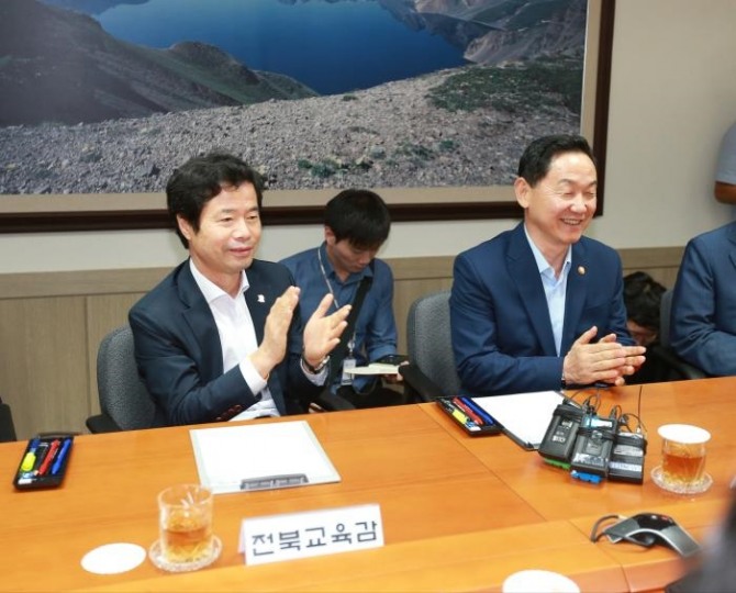 [글로벌이코노믹 조봉오 기자] 전국 시‧도교육감협의회는 김상곤 부총리 겸 교육부장관의 취임을 축하하기 위해 지난 13일 오후 2시 정부서울청사를 찾아 부총리를 예방했다.