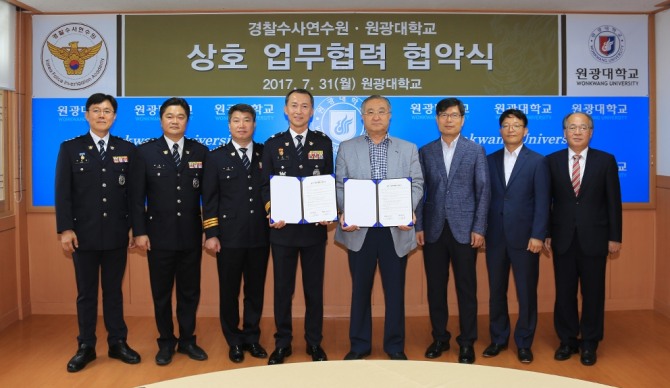 이미지 확대보기전북 익산시 원광대학교와 경찰수사연수원이 학문적, 실천적 상호 협력체계 구축을 위한 업무협력 협약을 체결했다.