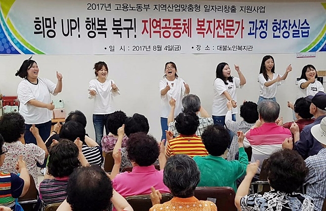 이미지 확대보기과정 교육생 20명은 지난 4일 오후 대구 북구 복현동 소재 대불노인복지관을 찾아 ‘실버체조’, ‘라인댄스’, ‘토끼의 재판 연극’ 등 복지 관련 공연을 선보이며 노인 어르신들에게 흥겨운 시간을 선사했다.