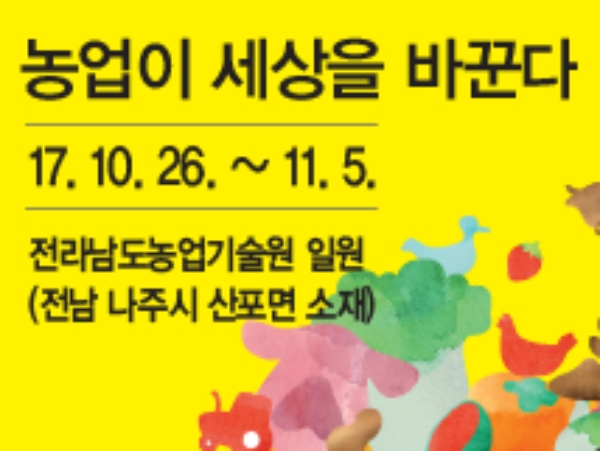 2017국제농업박람회는 ‘농업이 세상을 바꾼다’라는 주제로 오는 10월 26일부터 11월 5일까지 11일간 나주 소재 전남농업기술원 일원에서 열린다.