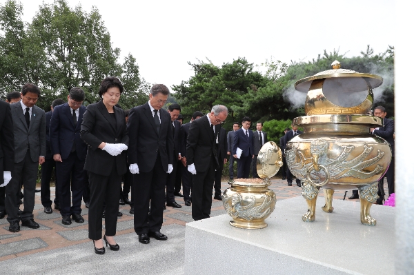 이미지 확대보기문재인 대통령은 이날 오전 국립서울현충원에서 열린 고(故) 김대중 전 대통령 서거 8주기 추도식에 참석해 추모사를 통해 "평화를 지키는 안보를 넘어 평화를 만드는 안보로 한반도 평화와 경제 번영을 이루겠다"고 말했다.