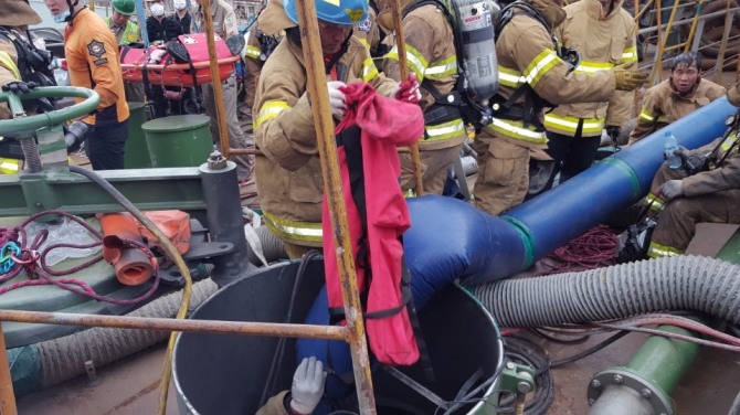 이미지 확대보기20일 오전 11시 37분쯤 STX 조선해양에서 건조 중이던 석유화학제품 운반선에서 폭발 사고가 일어나 안에서 도장작업 중이던 협력업체 소속 노동자 4명이 사망했다. 이들은 12m 깊이, 16.5㎡ 넓이의 탱크에서 도정작업을 벌이던 도중 원인 불명의 폭발로 탱크 안에서 안타깝게 숨졌다.