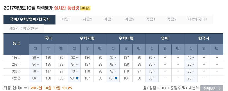 이투스는 국어 영역의 경우 1등급 90점, 2등급 84점, 3등급 76점이 될 것으로 내다봤다. 2016년 10월 모의고사 국어 1등급 컷은 92점이었다.