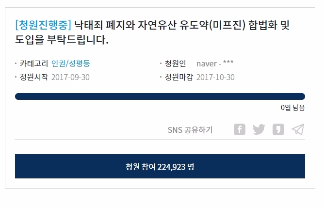 한편 이 청원글을 올린 게시자는 "현재도 아이를 키우기 힘든 이 나라에서 원치 않는 임신으로 태어나는 아이들이 과연 이 나라에서 행복하게 살수 있을까요? "라고 말했다.