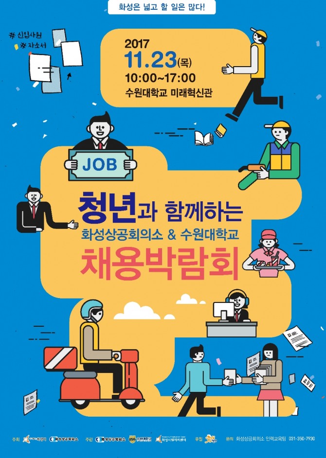 수원대와 화성상공회의소(회장 최주은), 화성시일자리센터가 주관하여 진행하는 채용박람회는 올해로 6회째로, ㈜수산중공업과 ㈜주성엔지니어링 등 화성지역 중견기업 및 고용노동부 선정 강소기업과 우수 구인업체 50개 사가 참여한다.