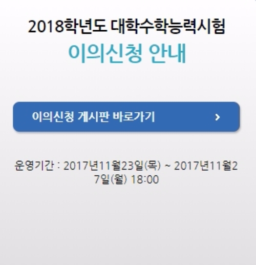 안내문에 따르면 이의 신청은 기간은 2017. 11. 23.(목) ~ 11. 27.(월) 18:00다.