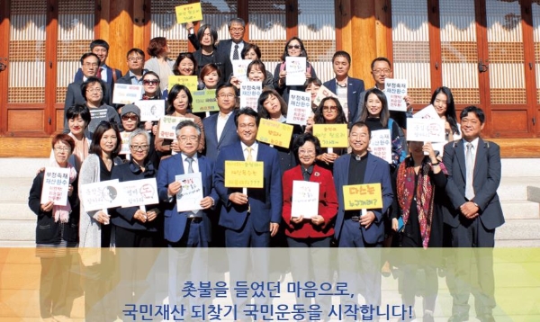 국민재산되찾기운동본부의 취지는 숨겨진 부정축재 재산을 국민에게 돌려주자는 것이다. 주축 운동은 ´플란다스의 계´다. 국민재산되찾기운동본부 집행위원장 겸 사무총장인 안원구 전 대구지방국세청장이 계를 주도했다. 계 이름은 tbs 라디오 ´김어준의 뉴스공장´에서 출연하는 진행자 김어준과 안원구 전 청장의 대화 과정에서 결정됐다. 다스의 실소유주라는 의혹을 받고 있는 이명박 전 대통령의 숨겨진 재산을 찾는 의미로 ´플랜 다스의 契(plan Das의 계)´라고 명명했다.