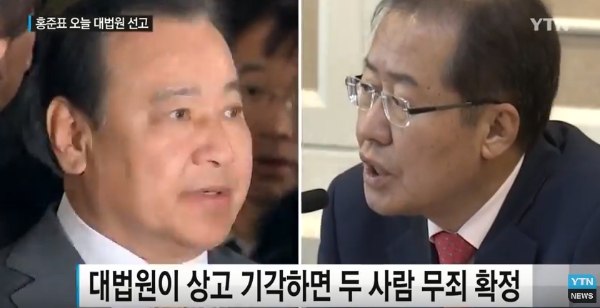 이미지 확대보기故성완종 전 경남기업 회장으로부터 불법 정치 자금을 받은 혐의로 법원에 넘겨진 뒤 2심에서 나란히 무죄를 선고받은 홍준표(63) 자유한국당 대표와 이완구(67) 전 국무총리의 대법원 상고심 판결이 오늘(22일) 선고된다.