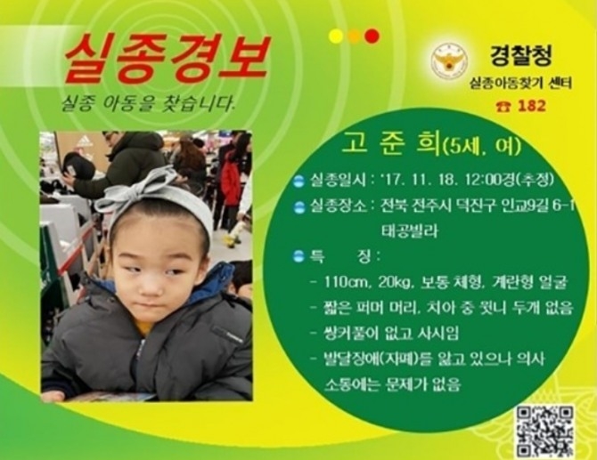 전북지방경찰청은 29일 오전 4시 47분경 군산시 한 야산에서 준희 양이 수건에 온몸이 감싸인 채 숨져 있는 것을 수색 중이던 경찰들이 발견했다고 밝혔다.