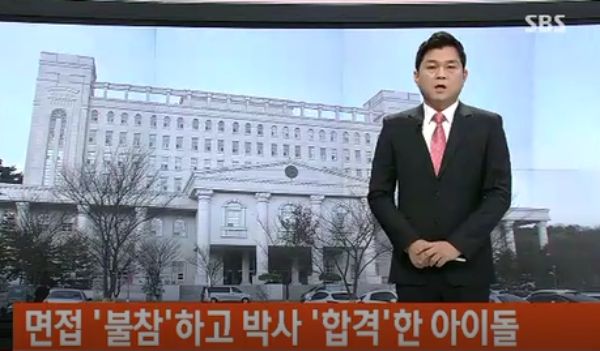 이미지 확대보기16일 SBS ‘8뉴스’가 “유명 아이돌 그룹 멤버 A씨가 경희대학교 일반대학원 면접에 불참하고도 최종합격했다”고 보도해 파문이 일고 있다.