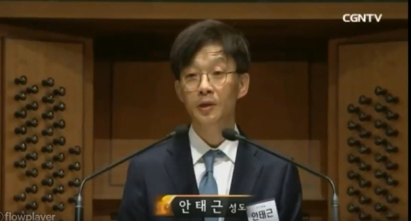 이미지 확대보기창원지검 소속 서지현 검사에 대한 성추행 가해자로 지목된 안태근 전 검사가 지난해 10월 서울 서초구의 한 교회에서 세례를 받으며 간증을 하는 영상이 주목받고 있다.