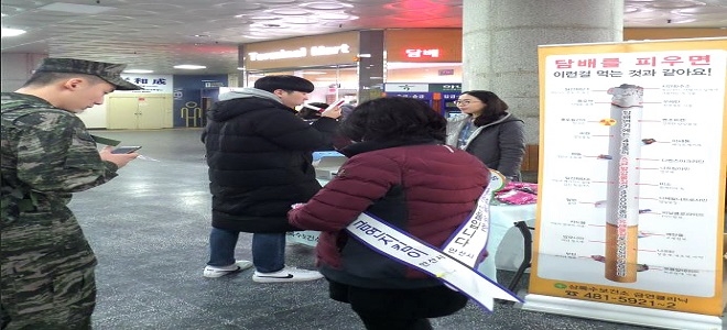 이미지 확대보기설연휴전 주말을 맞이해 터미널에서 실시된 이번 금연캠페인은 전철역, 터미널 등 공공시설 금연구역 내 금연 홍보와 금연체험관 운영을 통한 금연 권유를 위해 마련됐다.