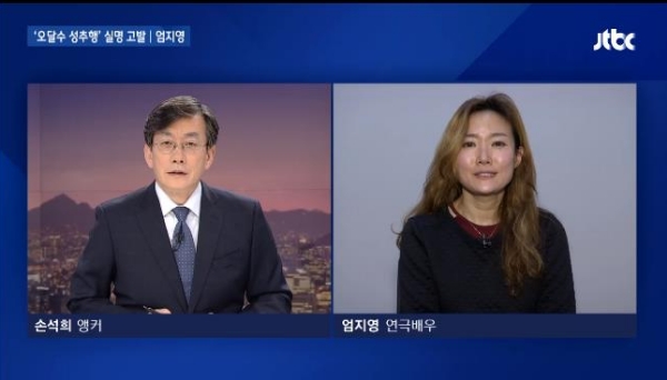 지난 27일 jtbc ‘뉴스룸’에 출연한 엄지영은 오달수가 사과는커녕 실명을 공개하지 않은 이유로 성추행을 없었던 일처럼 말하는 게 용서되지 않았다고 밝혔다.