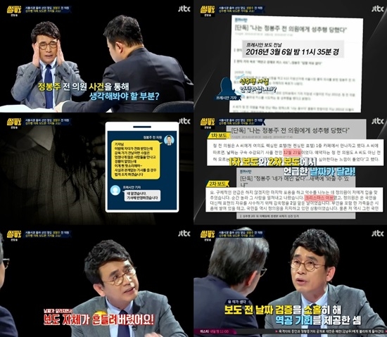 이미지 확대보기15일 방송된 JTBC '썰전'에서는 유시민 작가와 박형준 교수가 출연해 '서울시장 출마 앞둔 정봉주 전 의원, 성추행 의혹 보도한 기자들 고소'를 주제로 토론했다.