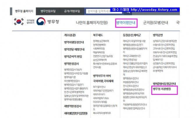 다음으로 병역판정검사 대상자 유의사항을 읽어본 후 병역판정검사 일자 및 장소를 본인이 직접 선택 '바로가기'를 하면된다.