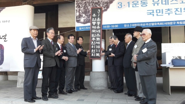 이미지 확대보기추진위는 이날 오후 2시 서울 서대문 독립공원 현충사 앞에서 현판식을 갖고 독립선언서를 비롯해 3·1운동 관련 각종 자료들을 유네스코 세계기록 유산으로 등재하기 위한 첫발을 내디뎠다.