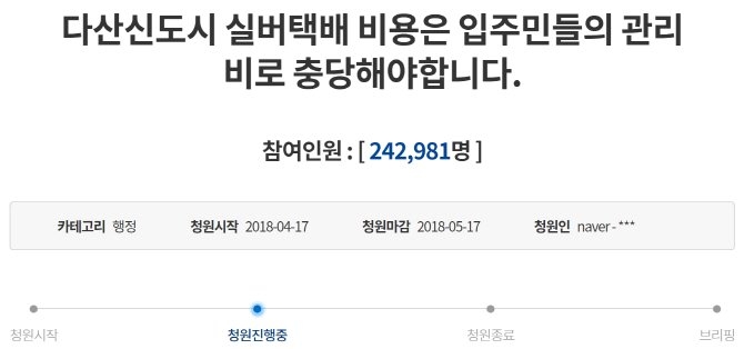 그러나 실버택배는 비용의 절반을 정부와 지방자치단체가 부담하고 있어 '국민 세금을 써야 하느냐'는 비판 여론이 제기됐다. 청와대 국민청원 사이트도 다산신도시 실버택배 지원을 반대하는 내용의 청원이 올라왔고 20만명이 넘는 사람이 참여했다.