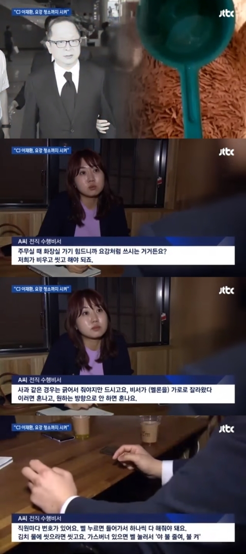이재환 CJ파워캐스트 대표의 전직 수행비서였다는 그는 "수행비서로 입사했지만 이재환 대표의 집으로 출근했다"며 하루의 일과가 이 대표가 요강으로 쓰는 바가지를 씻는 일부터 시작됐다고 밝혔다.