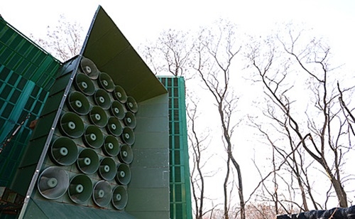 이미지 확대보기국방부는 23일 '2018 남북 정상회담 계기 대북 확성기 방송 중단 관련 발표문'을 통해 "국방부는 2018 남북 정상회담을 계기로 남북간 군사적 긴장 완화 및 평화로운 회담 분위기 조성을 위해 오늘 0시를 기해 군사분계선 일대에서의 대북 확성기 방송을 중단했다"고 밝혔다.