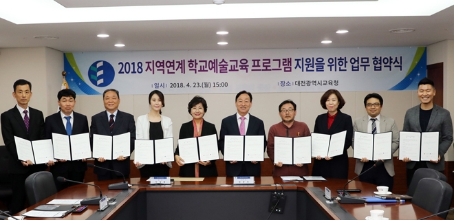 설동호 대전시교육감은 “다양하고 현장감 있는 학교예술교육을 위해 지역의 예술교육 유관기관간의 협력은 매우 중요하다”며 “오늘 업무협약을 통해 지역사회의 예술자원 및 시설 등을 학교예술교육에 적극 활용하여 예술교육 활성화를 도모할 것”이라고 말했다.