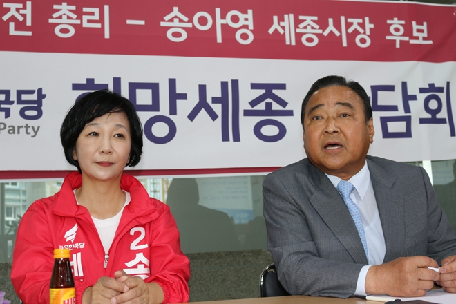 이미지 확대보기이 전 총리는 이날 오전 세종시 나성동에 위치한 송아영 자유한국당 세종시장 후보 선거사무소에서 열린 기자간담회를 갖고 "행정수도가 될 세종시를 명품도시로 만들기 위해 새로운 시각을 가진 송아영 후보를 지지해 달라"고 밝혔다.