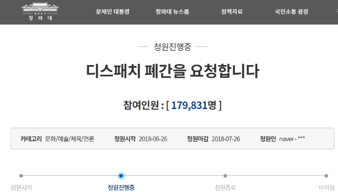 연예인들의 사생활을 대중 앞에 끄집어내는 언론의 행태에 지친 한 사람은 급기야 연예인 관련 소식을 주로 전하는 ‘디스패치’의 폐간을 요구하는 청와대 국민청원을 제기했다. 글쓴이는 “연예인도 사람입니다. 연예인도 보여주고 싶지 않은 부분이 있고 사생활이라는 게 존재합니다”라며 “허위 사실을 올림으로써, 해당 연예인이 큰 불이익을 받게 합니다”라고 주장했다.