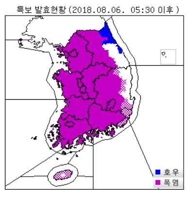 [글로벌이코노믹 온기동 기자] 기록적인 폭염에 전국이 잠못들고 있는 가운데 6일은 전국 내륙 곳곳에 반가운 소나기가 내리겠다. 하지만 기록적 폭염은 계속될 것으로 보인다.