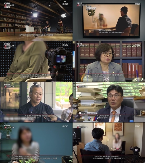 이미지 확대보기이날 'PD수첩'에서는 지난 시간에 밝혀졌던 충격적인 성폭행 의혹 외에도 추가 폭로가 이어졌다. 지난 방송이 나간 후 여성 스태프들과 일반인 할 것 없이 추가 제보가 이어졌고, 그들은 용기를 내 자신들의 피해 사실을 'PD수첩'에 고백했다.