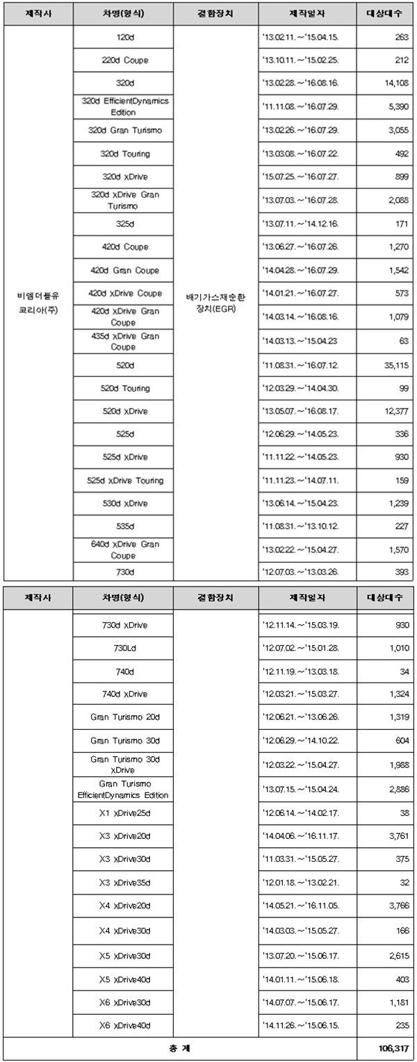 한편 BMW 리콜 대상은 자동차리콜불만신고센터(www.car.go.kr)에서 차량번호를 입력하면 해당 차량의 리콜대상 여부에 대해 확인이 가능하다. BMW(080-269-5181)로 문의해도 상세한 정보를 제공받을 수 있다.
