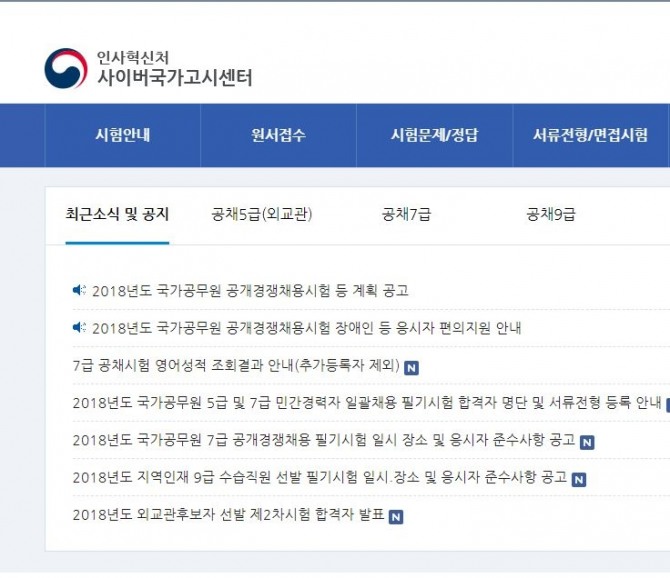 이미지 확대보기인사혁신처 사이버국가고시센터에 따르면 2018년도 국가공무원 7급 공개경쟁채용 필기시험 응시자는 해당 고사장에 오전 9시 20분까지 입실해야 한다. 고사장은 오전 7시 30분 이후 개방된다.