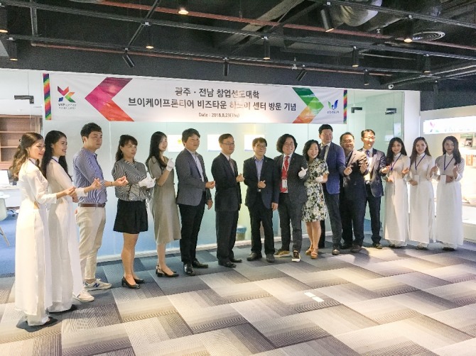 이미지 확대보기조선대 창업지원단(단장 이인화)은 8월 23일 광주·전남 창업선도대학 베트남 진출 해외 거점 센터를 오픈했다. 센터는 조선대, 순천대, 광주대 3개 대학교가 연합하여 운영한다.