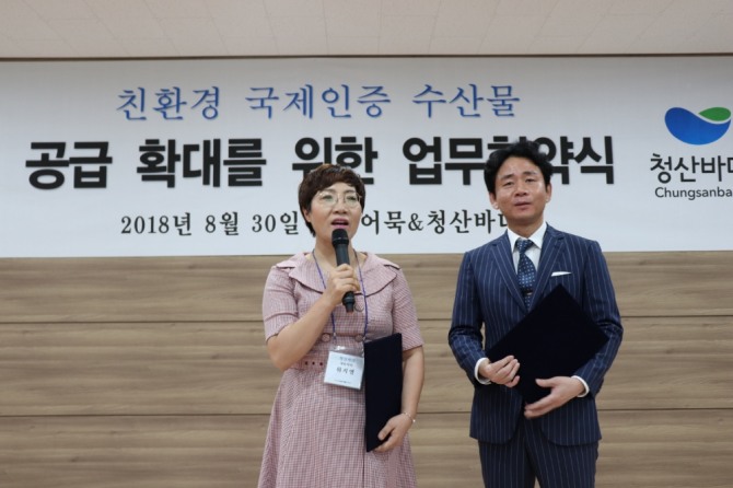 특히 청산바다는 이 날 완도군 문화예술전당에서 진행된 ASC(양식관리위원회) 인증 전달식에서 아시아 최초로 ASC인증을 취득해 삼진어묵과의 업무 협약식에 의미를 더했다.