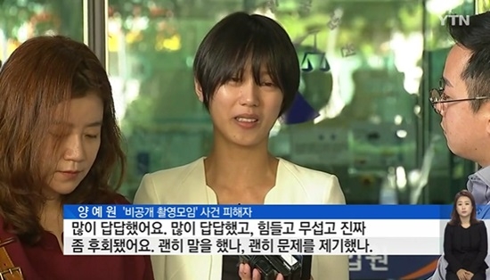 스튜디오 실장과 주고받은 카카오톡(카톡) 내용이 공개되고 각종 악플에 시달리기도 했던 그는 "정말 잘 이겨내 보려고 버티고 버텼다"고도 했다. 힘겹게 말을 이어가며 양예원 씨는 떨리는 목소리로 울먹이기도 했다.