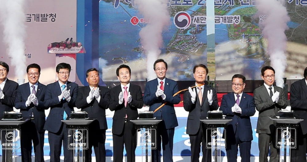 전북도는 27일 부안 새만금 홍보관에서 이형규 새만금위원회 민간위원장과 송하진 도지사를 비롯해, 이철우 새만금개발청장, 해당 지역 지자체장과 국회의원, 지역 주민, 새만금사업 유관기관 등 약 1,000명이 참석한 가운데 새만금 남북도로 2단계 건설공사 기공식을 개최했다고 밝혔다.
