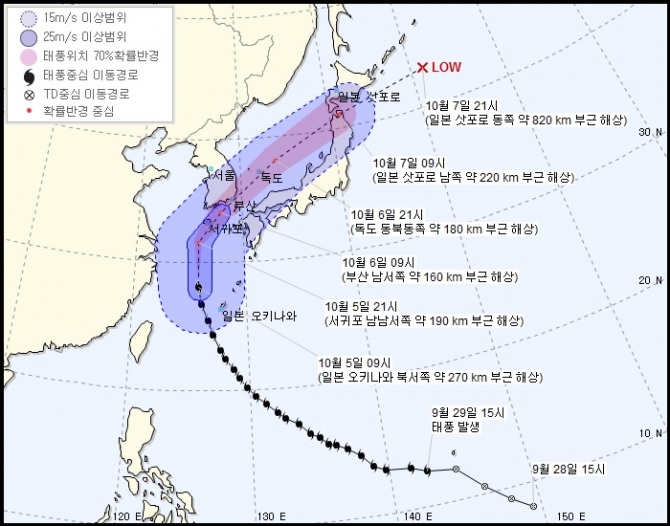 제25호 태풍 콩레이는 오후 9시쯤 서귀포 남남서쪽 약 190km 부근해상까지 북상할 것으로 예상된다.