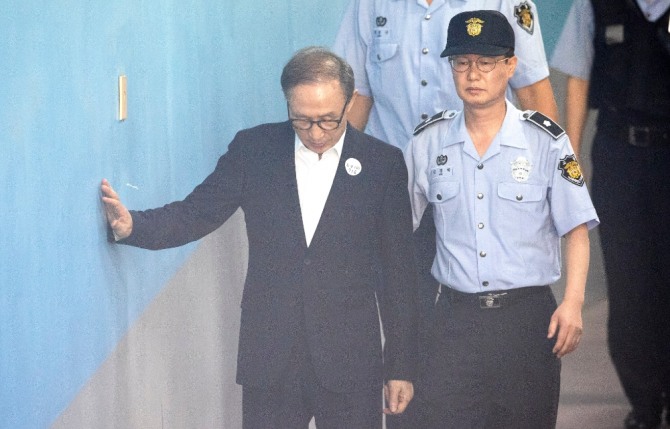 이미지 확대보기5일 서울중앙지법 형사합의27부(정계선 부장판사)는 이명박 전 대통령에 대해서 징역 15년, 벌금 130억, 추징금 82억 7070만원을 선고했다.