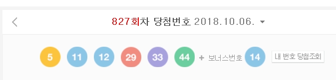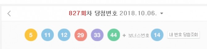 6일 실시한 나눔로또 제827회 로또복권 1등 당첨번호는‘5, 11, 12, 29, 33, 44’ 2등 보너스는 ‘14’번이다.