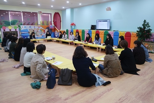 원장 간담회는 화성시 센터에 지원을 받는 어린이 급식소 원장들에게 센터 지원 업무인 조리실 순회방문, 영아 인형극 및 뮤지컬의 활성화, 부모교육, 영어영양캠프에 대한 요구사항을 듣고 센터 운영에 반영하기 위한 자리로 임경숙센터장, 김형숙부센터장과 동산몬테소리어린이집 원장 외 19명의 원장이 참석하였다.