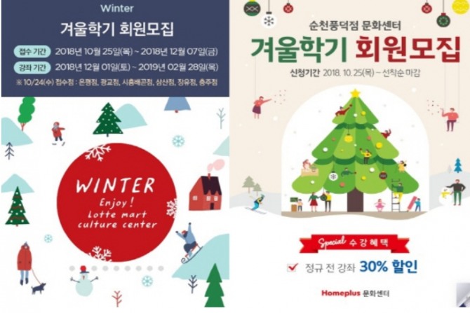 롯데마트와 이마트 문화센터도 겨울학기 회원모집을 시작했다.