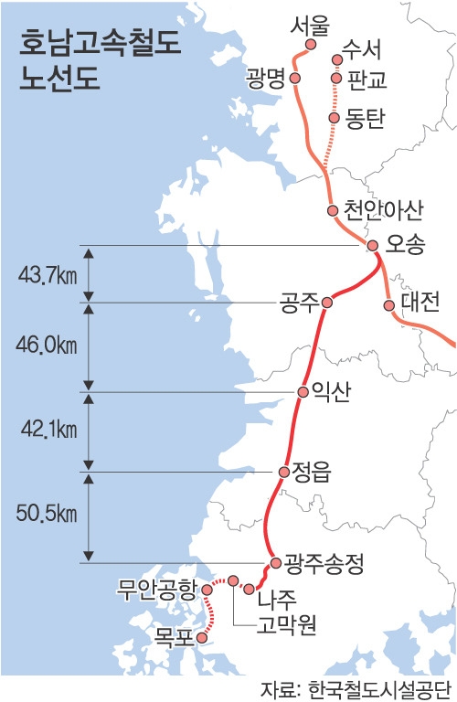 현행 호남선 KTX는 평택-천안아산-오송을 거치는 노선으로,지금 노선이 천안-세종-공주 노선에 비해 19㎞를 우회하고 있다.