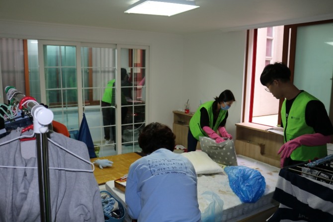 [글로벌이코노믹 허광욱 기자] 매달 민·관 합동으로 현장중심 나눔 활동을 펼치고 있는 ‘광산구 복지공감의 날’인 지난 7일, 희망우산봉사단, 대한어머니회광산지회, 호남대학교학생봉사단 회원들이 중학생 1인 가정을 찾아 집안에 쌓인 쓰레기와 반려견 분비물을 치우는 등 주거환경개선 봉사활동을 실시하고, 겨울옷과 침구, 식료품 등을 전달했다. /광주광역시 광산구=제공