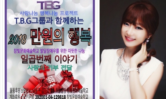 이미지 확대보기토탈뷰티 업체인 TBG토탈뷰티 비즈니스 그룹 회장 황태양 대표 우윤정 남모르게 만원의 행복 시리즈를 만들어 발달장애우와 함께하는 자선행사를 벌써 7년째 실천하고 있다.