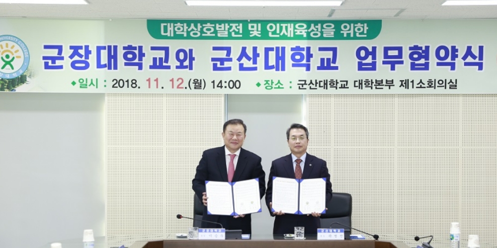 이 협약은 양교의 협력을 통한 지역 우수 인재육성 활성화 등을 도모하기 위한 것으로, 군산대학교에서는 곽병선 총장, 이성수 교무처장, 이성미 학생처장, 양현호 기획처장, 최현재 입학관리본부장, 박인수 대외협력과장, 정용진 산학협력과장 등이 참석했고, 군장대학교에서는 이승우 총장, 이계철 부총장, 손동희 교학처장, 고석주 행정안전지원처장, 이희승 산학협력단장, 정홍기 산학협력팀장 등이 참석했다.
