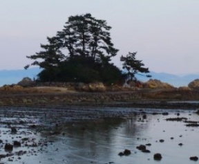 간조 때 물이 빠져나가면 섬까지 도보로 걸어갈 수 있다. 해변에는 많은 양의 굴들이 있고, 굴 무덤을 지나는 것 같은 느낌이 든다.